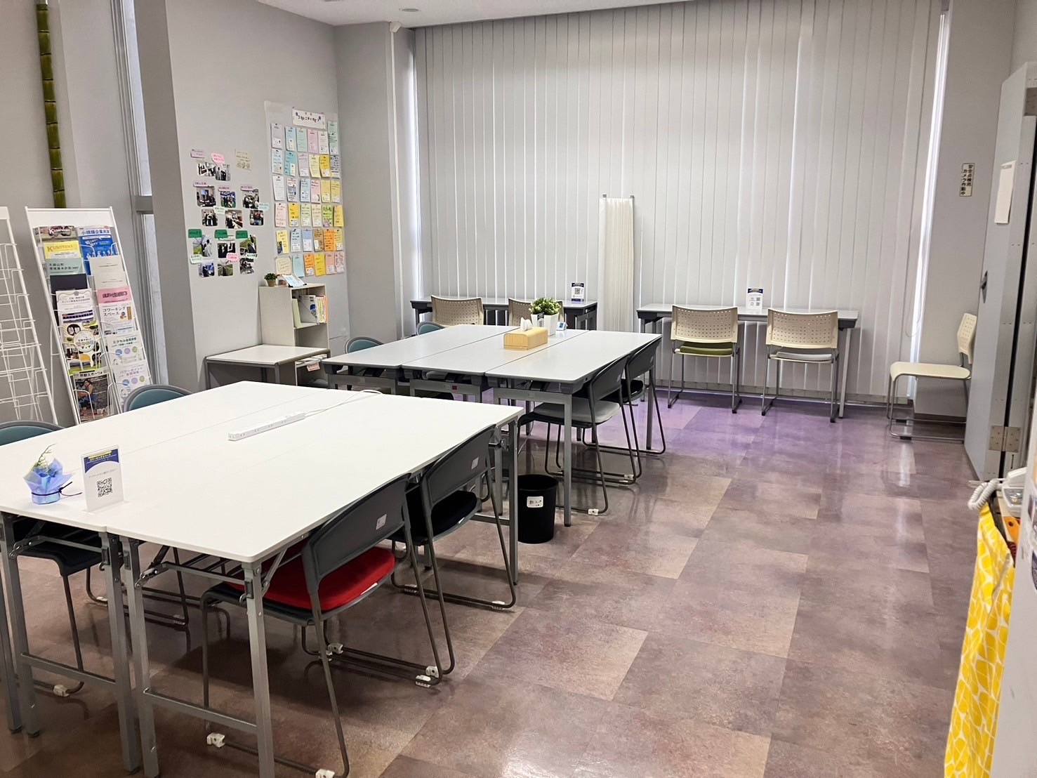 ドロップイン/コーディネータ有/イベント利用可/フリードリンク/受付対応/Wi-Fi有/書籍有/会議・打ち合わせ/防音ブースあり/ミーティングルームあり