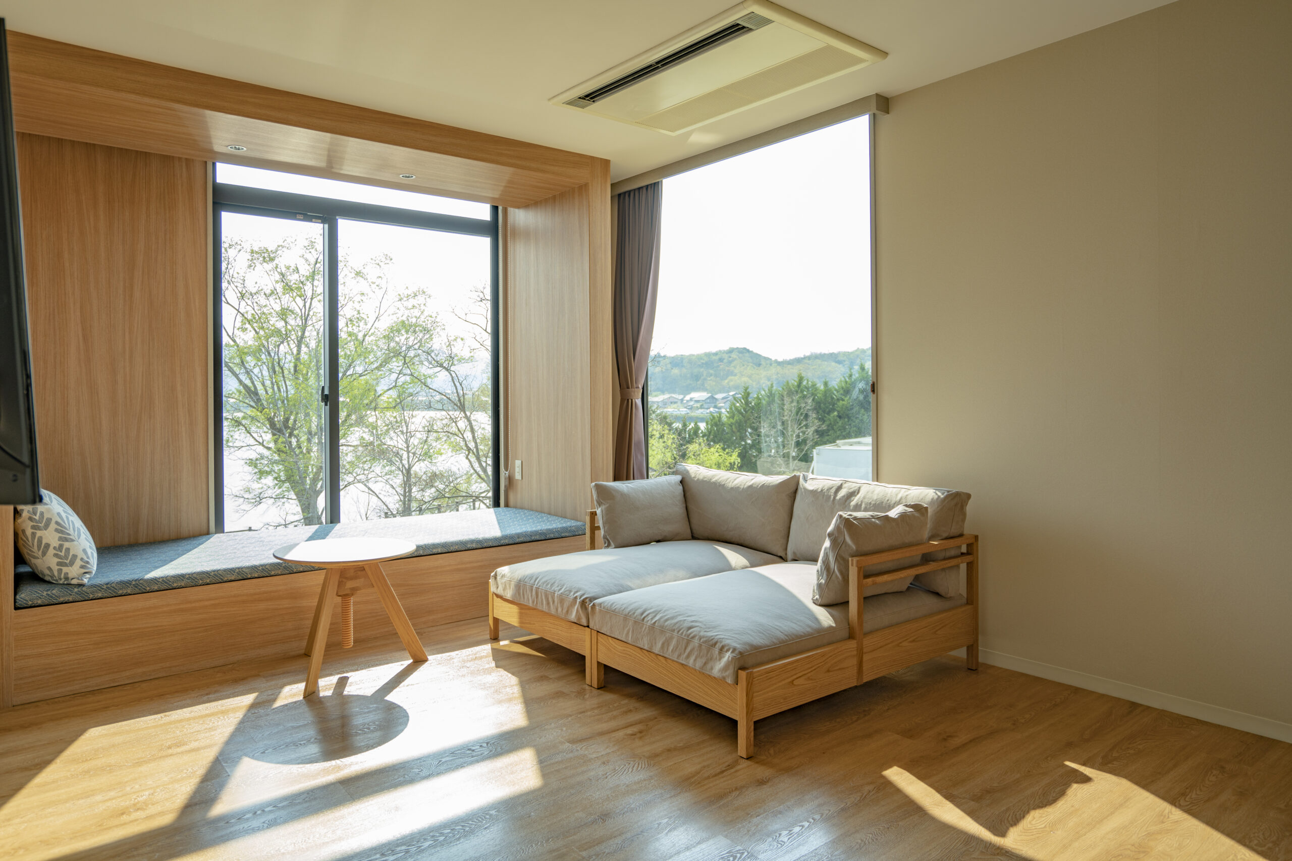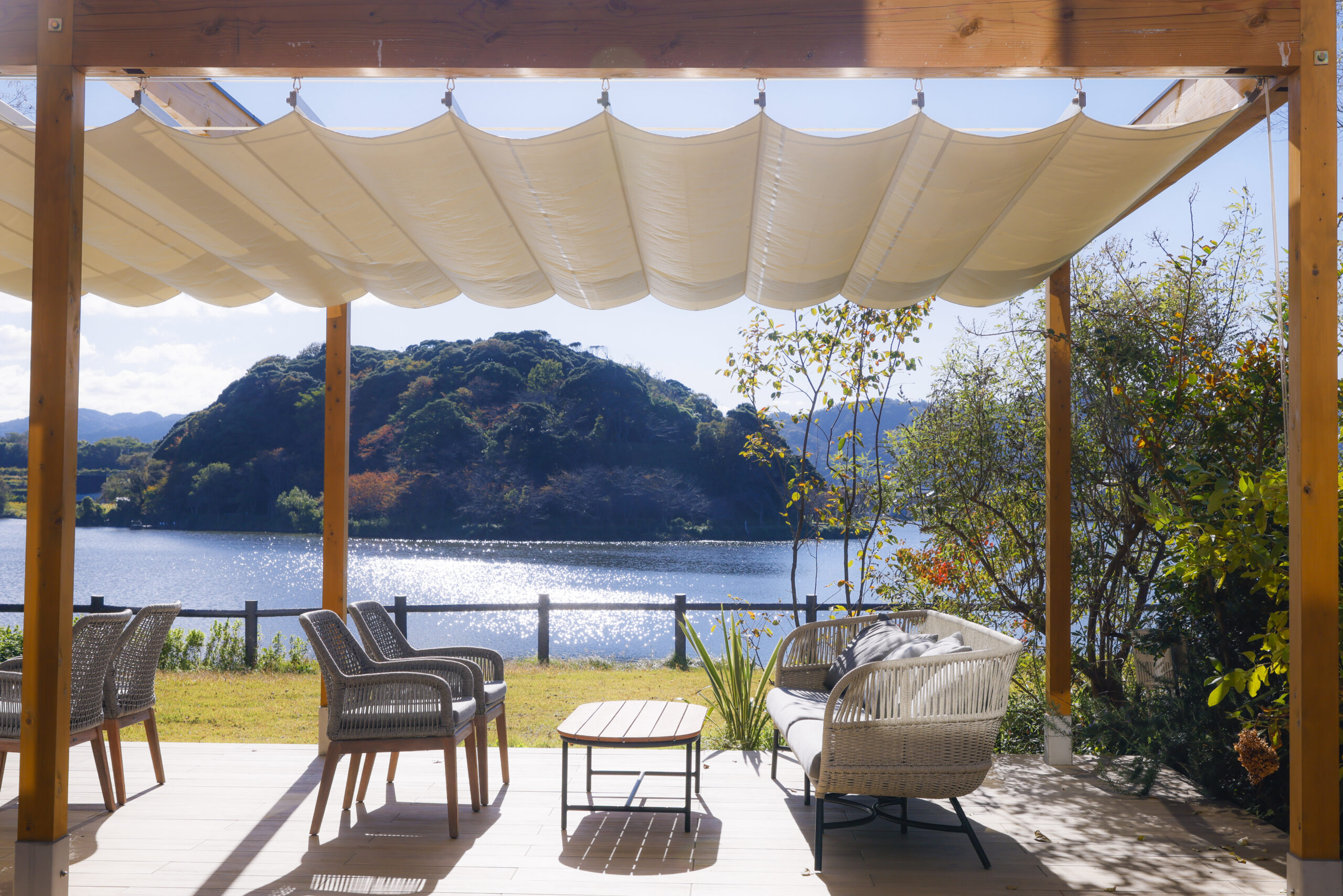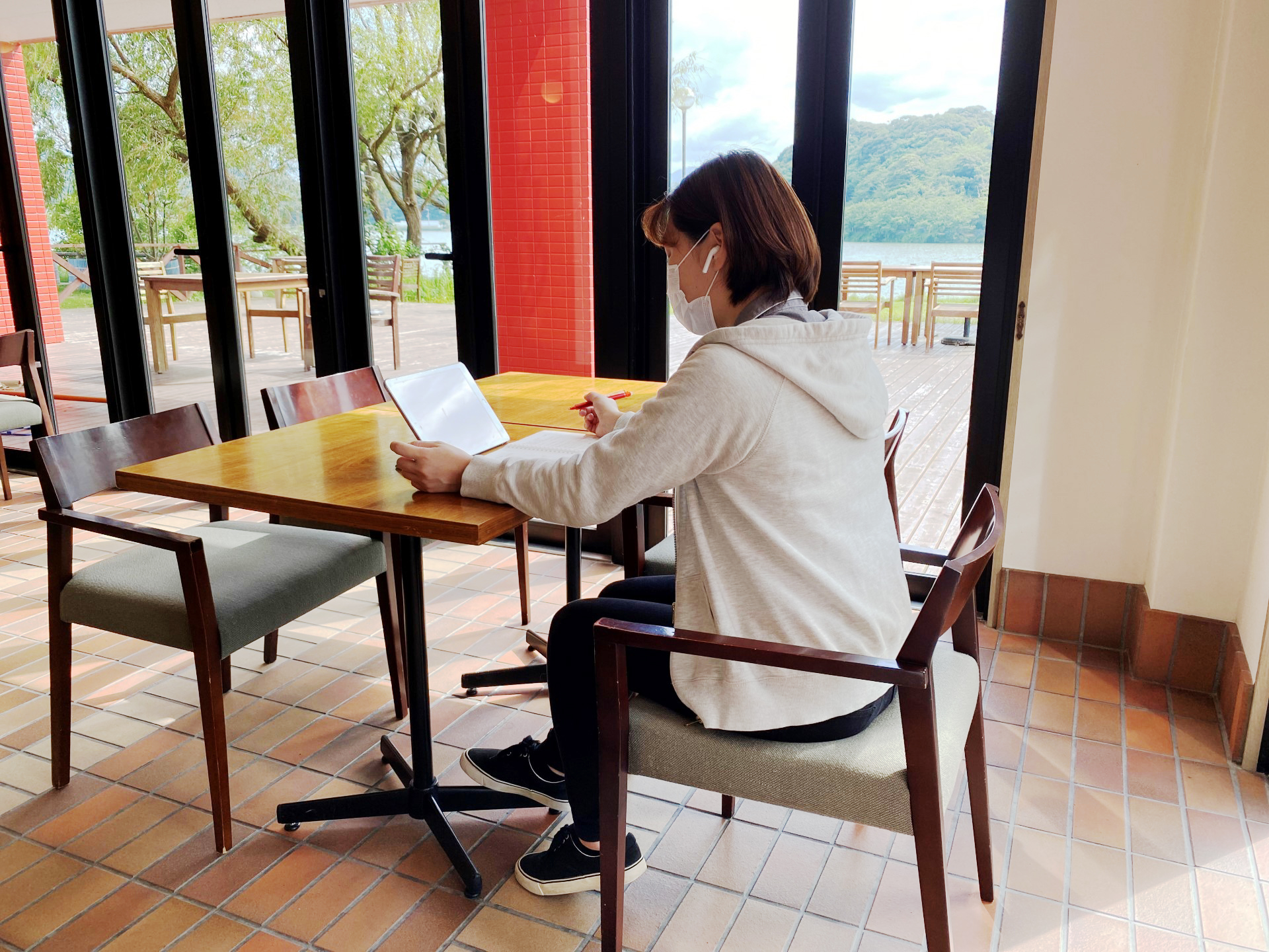 湖畔の見えるダイニングやテラス席でお仕事をしていただけます。